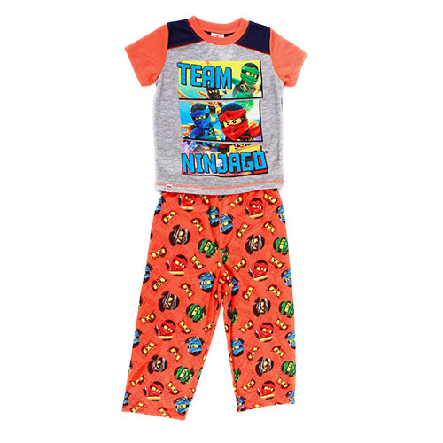 Pijama Lego Ninjago para niños. Dos piezas: playera en manga corta con pantalón en color naranja. Elaborada con materiales textiles, con un nivel de calencamiento ligero.