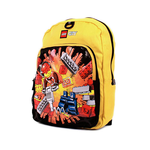 Lonchera Escolar Lego ® Batman en color amarillo con negro, con cierre de cremallera, tirantes acolchados ajustables, cuello de armario colgante y bolsillo delantero.