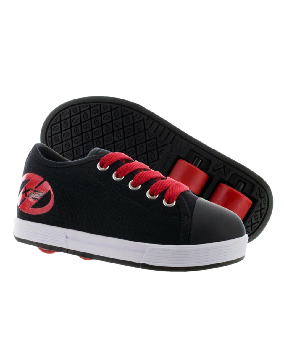 Tenis Patin Heelys elaborado en material textil color Fresh X2 negro con rojo , punta redonda, con agujetas en empeine, detalles unicos, pespuntes en realce y suela antiderrapante con 2 ruedas.