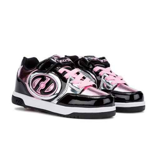 Tenis Patin Heelys elaborado en material sintético, de la linea Plus X2 Ligted cuenta con una combinacion de materiales en cromo negro y plata, con la punta redonda, tiene velcro en la parte del empeine, lo mejor es que la suela es antiderrapante.